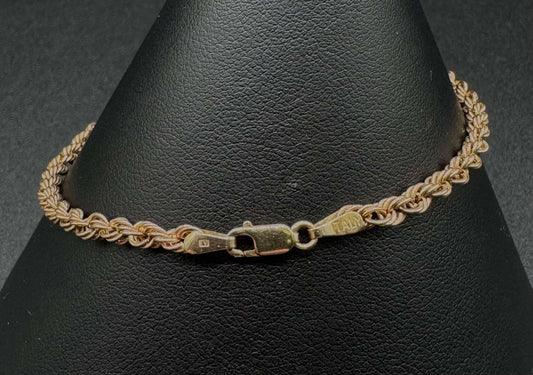 10kt Gold 8" 2.3mm Rope Link Bracelet