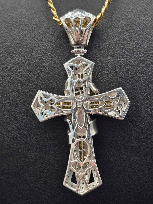 14Kt White Gold Multi Colour Diamond Cross Pendant